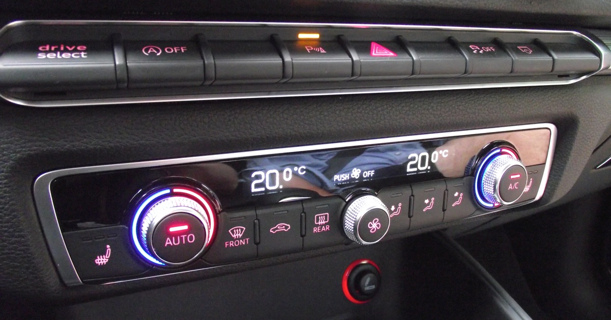 Der Innenraum der Limousine ist von weitgehend guter Ergonomie. Positiv hervorzuheben ist die wirklich übersichtliche Mittelkonsole. Eine Tastenleiste lässt dem Fahrer die Möglichkeit u. a. Fahrmodi auszuwählen, die Fahrdynamikregelung oder das Start-Stopp-System zu deaktivieren. Darunter befindet sich in gewohnt herausragender Audi-Qualität das Klima-Bedienteil.